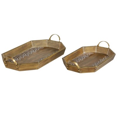 Enamel Serving Tray With Handles - 5 out of 5 stars.. Designed in an oval shape, this cream serving tray has a contrasting red rim for a lively look. Iron size 12 x 13 x 9 , 9 x 12 x 8. Ships free orders over $39. Leaves our warehouse within 15 business days! Free shipping on many items.