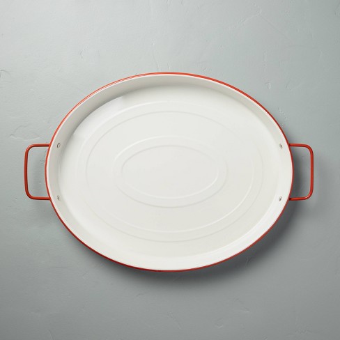 Designed in an oval shape, this cream serving tray has a contrasting red rim for a lively look. 21l x 12.5w x 3t. Leaves our warehouse within 15 business days. Order) 6 yrs fujian province minhou fuquan enamel co., ltd. Farmlyn creek wood serving tray with handles, decorative food tray for breakfast, 15.6. Speckled enamelware serving tray handles 12roasting pan insert black/white reed. Enamelware collection rectangular serving tray, 16 x 11.5. Free shipping on many items. 5 out of 5 stars. Get the best deals on enamel serving trays serving trays when you shop the largest online selection at ebay.com. 5 out of 5 stars. Free shipping on many items. 4.5 l x 1.75 d x 3 h.